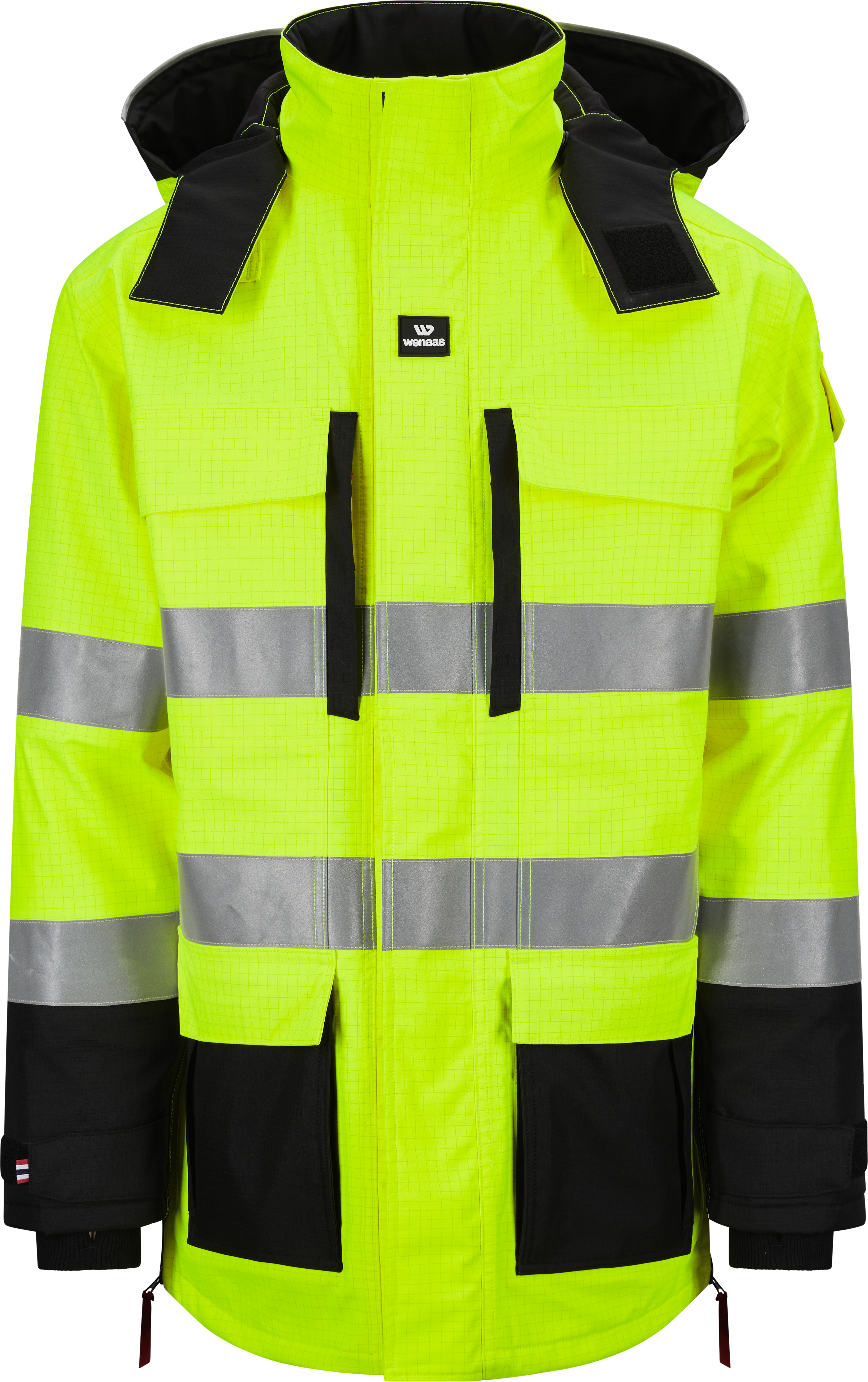 EN ISO 13688:2013+A1:2021, EN 343:2019, class 4.1 EN 342:2017, class 3. Icler 0,342 m²K/W(B) in combination with 29231-44515, 29232-44515, or 29242-44515, EN 1149-5:2018, IEC 61482-2:2018, APC 1 (4 kA), ATPV 39 cal/cm², ELIM 35 cal/cm² EN ISO 11611:2015, Class 1 A1+A2, EN ISO 11612:2015, A1+A2 B1 C1 E1 F1, EN ISO 20471:2013/A1:2016, class 3