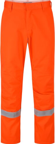 Vlamvertragende broek met verborgen gulp met rits, riemlussen, twee zakken aan de zijkant, twee achterzakken met klep, duimstokzak op het rechterdijbeen, zakken aan de buitenzijde voor kniebeschermers en reflecterende strip rond het been.