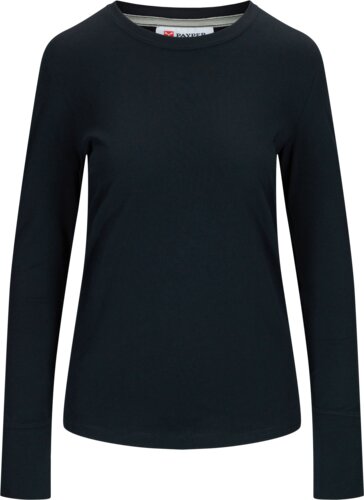 Dames T-shirt van elastaanmix stof. Lange mouwen en een ronde hals, doorgestikt voorpand en getapete verstevigingen aan de binnenkant van schouder tot schouder en aan de zijnaden voor meer duurzaamheid.