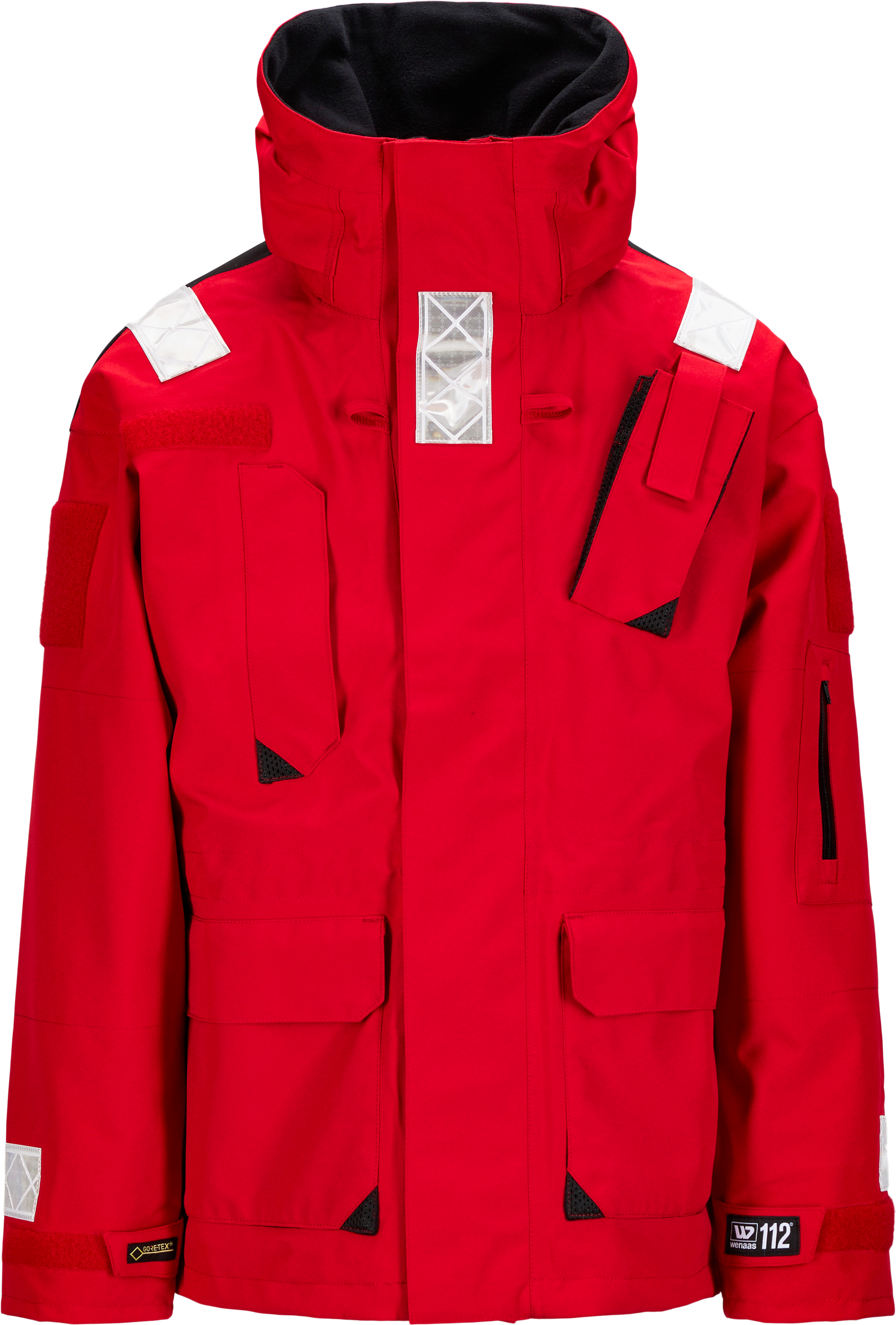 Gelamineerd met Gore-Tex-membraan, ademend, aramide-versteviging op de ellebogen, zachte klittenbandsluiting voor het aanbrengen van een merk op de schouders, radiozak op de borst, verborgen, afneembare capuchon.