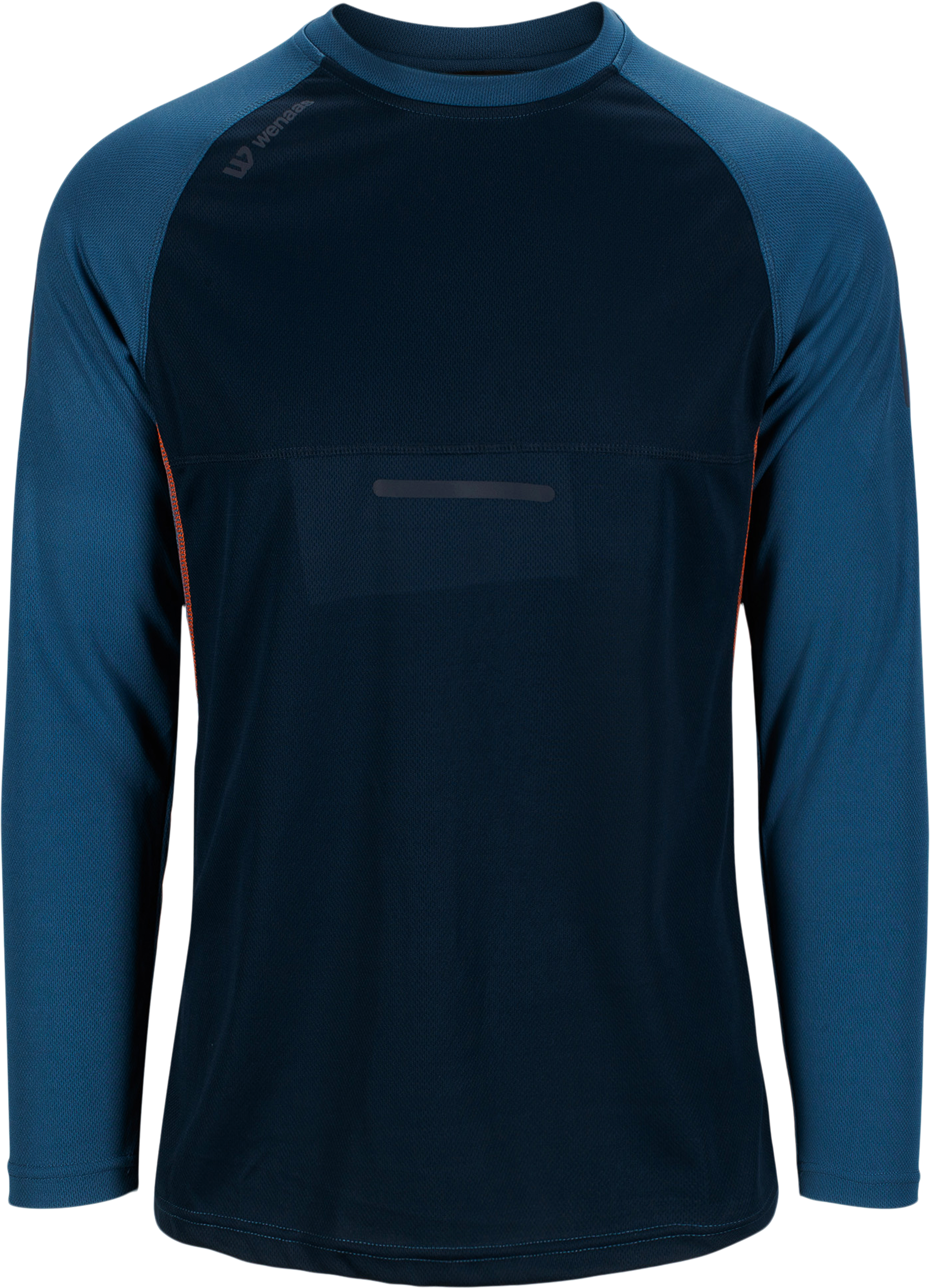 T-shirt in een lichte en vochtafvoerende gaasstof. Ronde kraag, lange mouwen, extra ventilerend gaaspaneel in de nek en onder de mouwen, reflecterende strook op romp en mouwen.