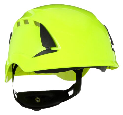 Geventileerde SecureFit™ X5501 helm in een modern ontwerp zonder rand, zodat het zicht naar boven niet wordt geblokkeerd. Vier verschillende instellingen voor hoogte. 4-punts ratelophanging met comfortband. De drukverspreidingstechnologie verhoogt het gebruikToon meer