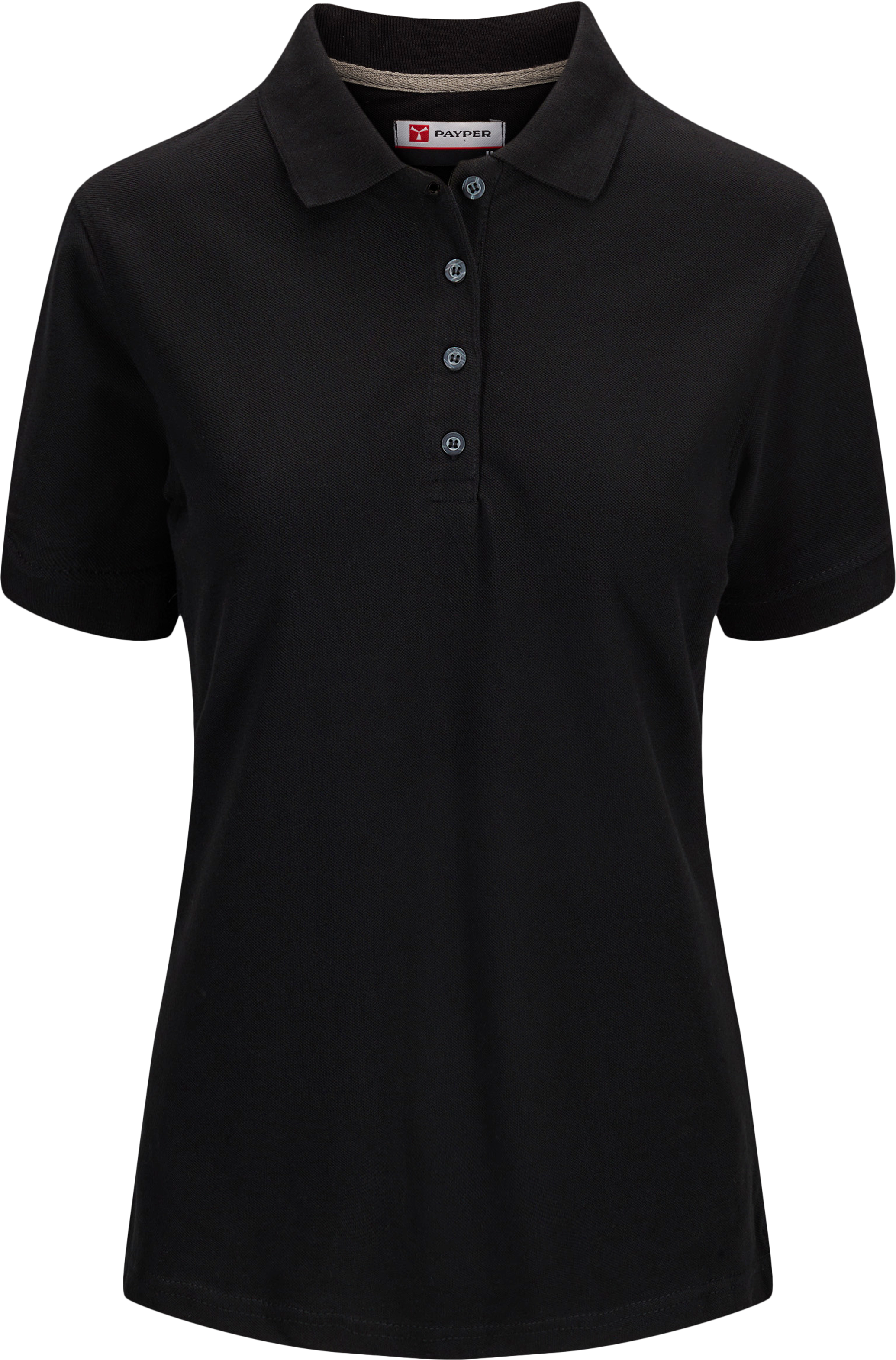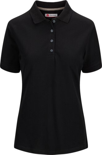 Damespolo T-shirt met korte mouwen, 3 bijpassende, opalescente knopen, geribde manchetten en splitjes aan de zijkanten, verborgen naad aan de binnenkant van de kraag met contrasterende band en verstevigingsnaden aan de zijkanten.