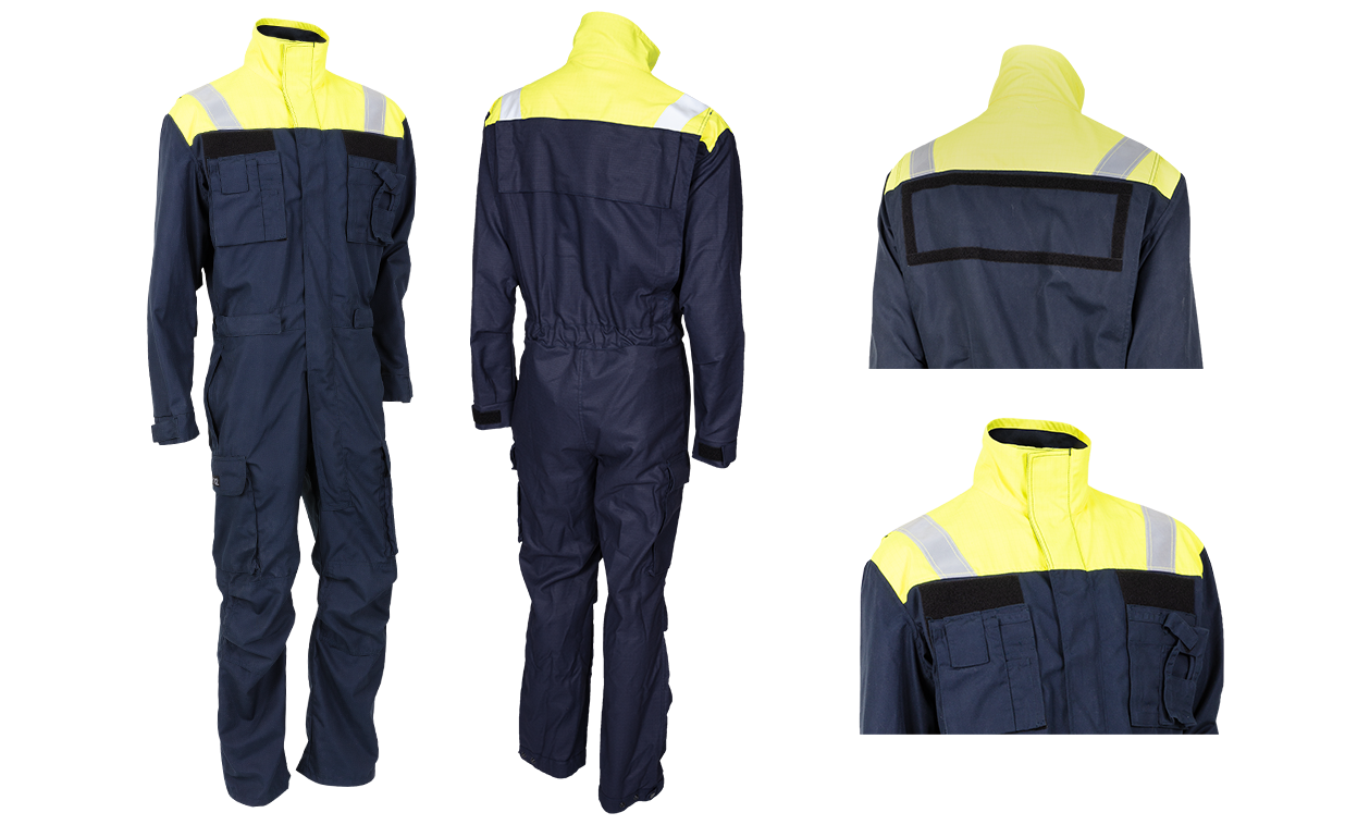 Dräkten är baserad på Räddningsdräkten, där vi behåller det som är bra och tar bort allt som inte behövs vid skogsbrandbekämpning. Vi har därmed fått en kostym med perfekt passform och bra justeringsmöjligheter samtidigt som den är lätt, luftig och flamskyddad. Sikten säkerställs av ett gult fluorescerande axelstycke med reflektor över axlarna för god sikt från helikoptern.