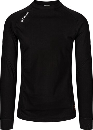 Antistatisk, flamhämmande och ljusbågeskyddande tröja tillverkad av ett mjuk, resårstickat material. Rund resårstickad ringning och långa raglanärmar med resårstickade muddar. Tröjan passar bra för dig som ska vistas i varma miljöer och ändå behöver underkläder med skydd mot eld och ljusbågar.