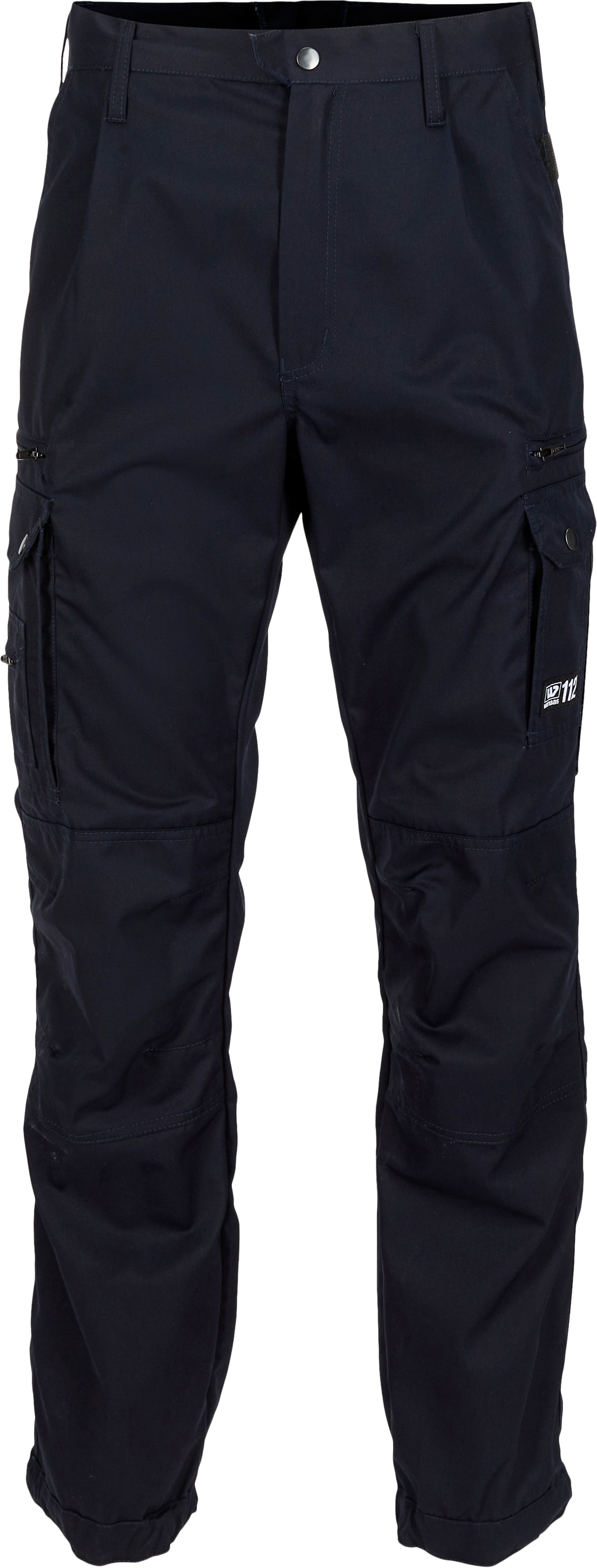 Teknisk beskrivning: Action-byxor med två lårfickor med blixtlås, utanpåliggande stora lårfickor med flik och tryckknapp, pennficka och mobilficka, formsydda knän med förstärkning, tryckknappsjustering vid bensluten. Observera att benen är 5 cm kortare än standard.