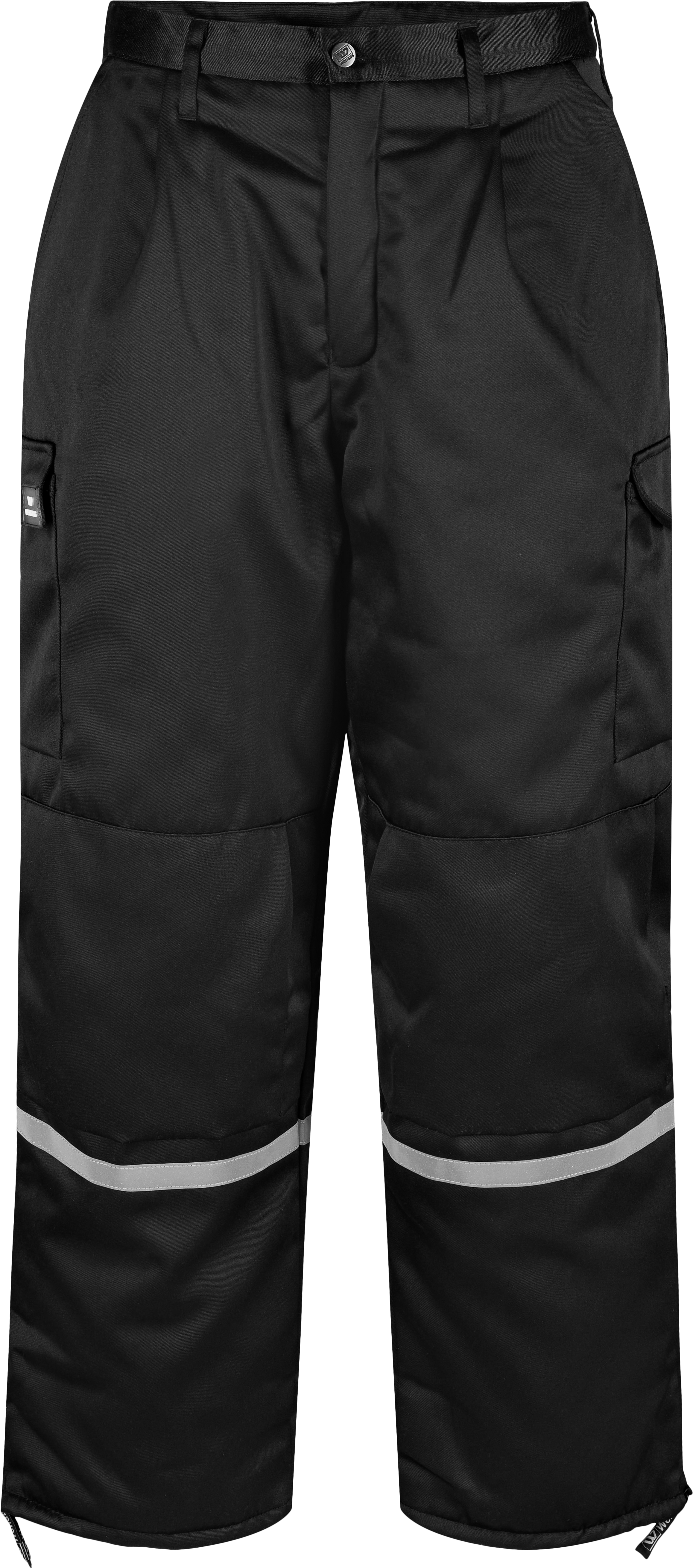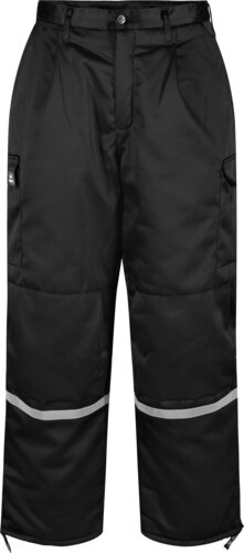 Slitstarka, vadderade vinterbyxor med högt bakstycke som skyddar korsryggen mot kyla. Flera praktiska fickor, bland annat för knäskydd. Blixtlås i bensluten gör att byxorna enkelt kan dras av och på, även med skodon på. Passar bäst för vintersäsongen eller arbete i kalla miljöer, såsom kylrum och liknande.