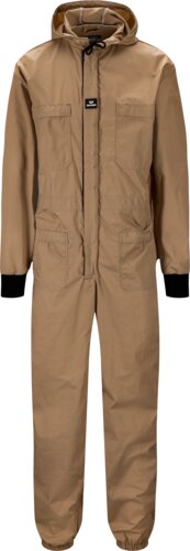 Bekväm overall med tvåvägsdragkedja fram och huva med snörning. Resår i midjan gör att plagget sitter bra. Många praktiska fickor. Mudd i ärmsluten och resår i bensluten. Overallen passar bra om du behöver ett plagg som håller damm och partiklar ute.