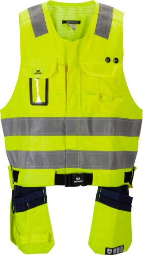 Mjuk reflexväst med flamhämmande egenskaper som andas. Hängfickor både fram och bak, och många andra praktika fickor och verktygshållare. Förlängt ryggstycke skyddar korsryggen. Passar bra för hantverkare som behöver arbetskläder som är både flammsäkra och som märks tydligt.