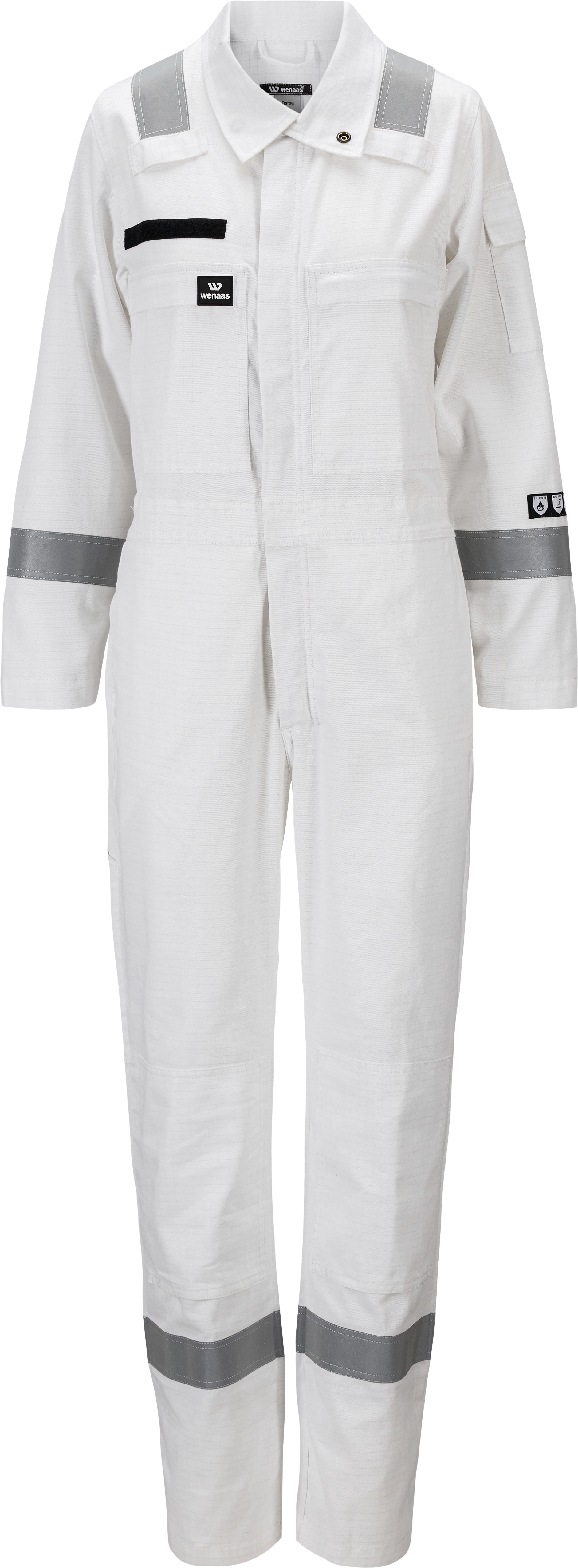 Bekväm flamskyddad overall för damer. Stående krage, tvåvägsdragkedja och veck i ryggen. Resår i ryggen och kardborre för namnbrickafäste. Flera praktiska fickor ink. knäskyddsfickar och reflexband. Overallens tyg upplevs som lätt och luftigt på kroppen.