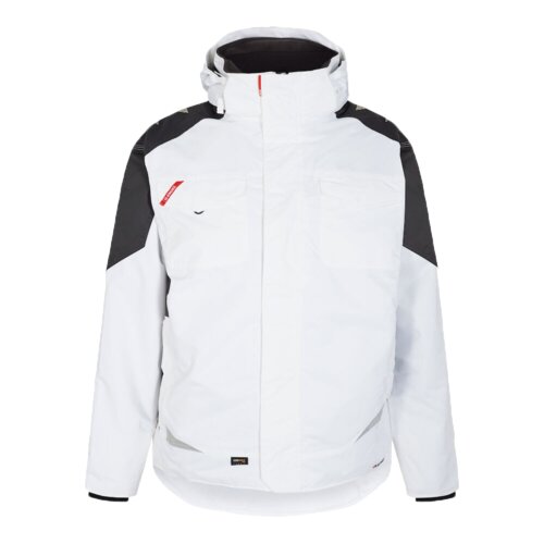 Vattentät och andningsbar pilotjacka med hög hals och förlängd rygg gör detta till en bra vinterjacka. Dold dragkedja och kardborreband framtill håller vinden ute. Många praktiska fickor och avtagbar huva. Justerbart vindfång längst ner och ribbat tyg vid handleder och i kragen minskar risken för drag. Förstärkningar på armbågarna för ökad slittålighet. Reflexer på axlarna ger ökad synlighet. Tejpade sömmar gör vinterjackan tålig mot slask och snö.