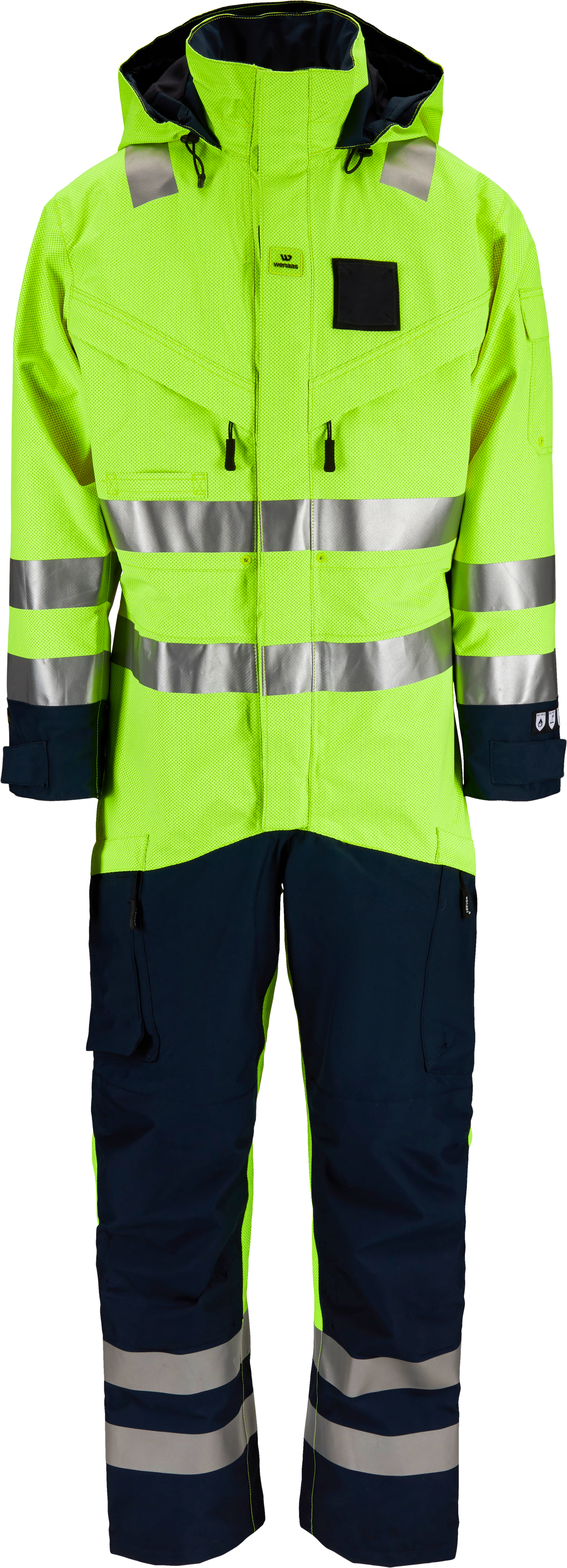 EN ISO 13688:2013+A1:2021, EN 1149-5:2018, EN ISO 20471:2013+A1:2016, Coverall class 3, EN ISO 11612:2015, A1+A2 B1 C1 D3 E1 F1, IEC 61482-2:2018, APC 2 (7 kA), EBT 49,1 cal/cm², EN ISO 11611:2015, Class 2 A1+A2, EN 343:2019, Resistance to water penetration class 3, water vapour resistance class 3, rain tower test X, EN 13034:2005+A1:2009, Type PB[6]
