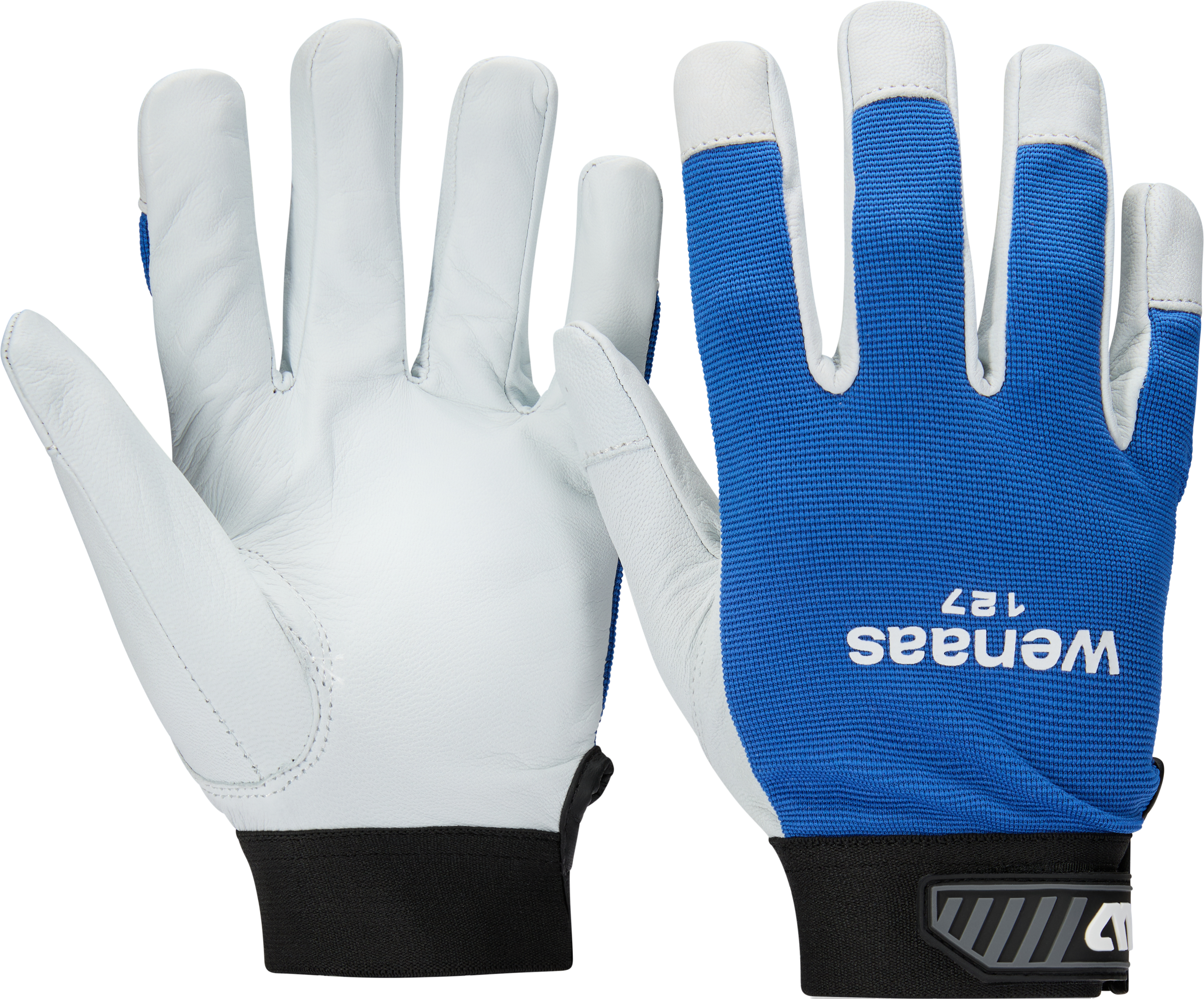 Getskinn, utmärkt känslighet och skydd mot slitage, handryggen i elastisk polyester, Kardborreband vid handleden. Bunt: 6 - Kartong: 72.
