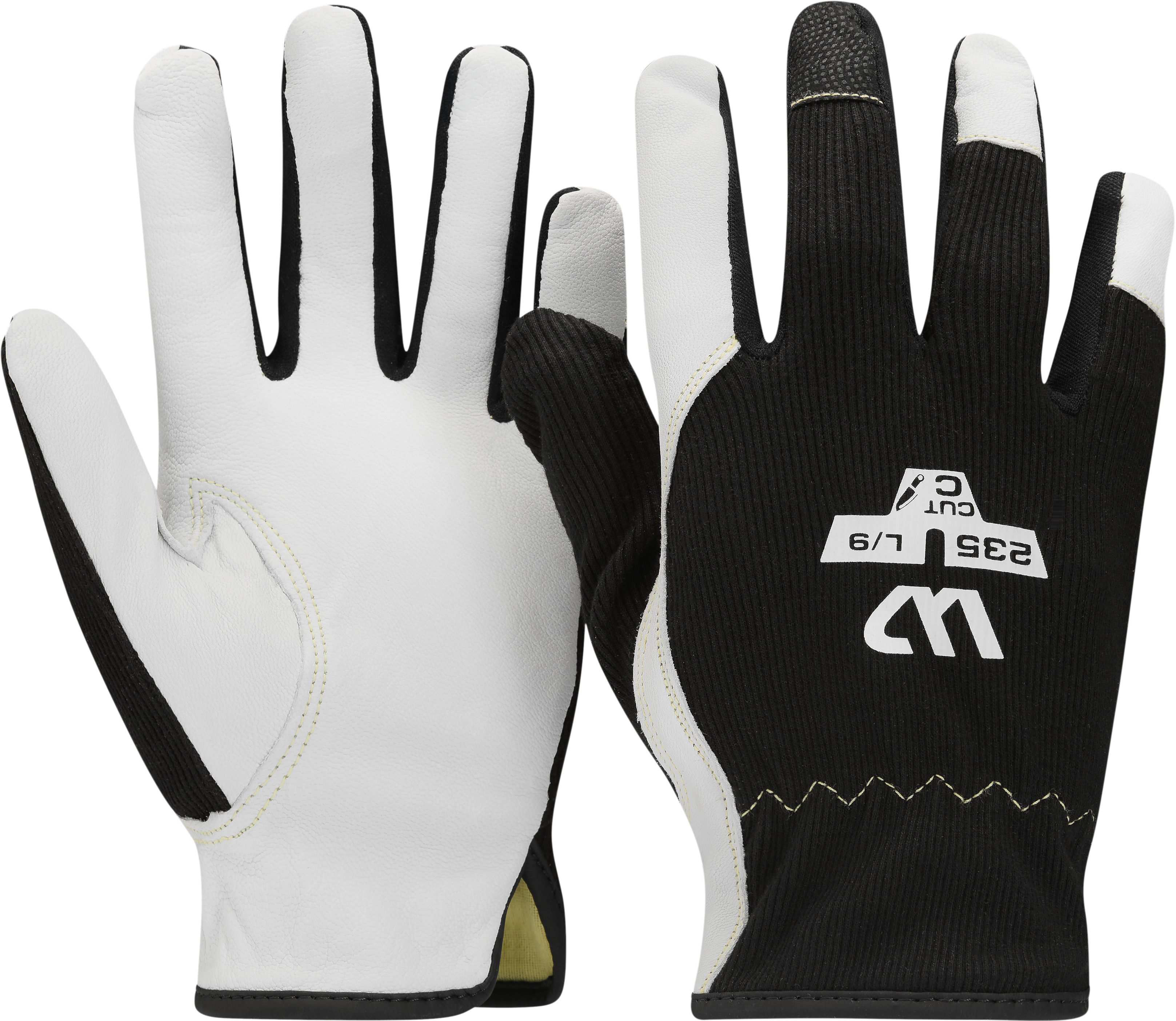 Skärresistent handske i getnarv för precisionsarbete. Bomull på handryggen, helt fodrad och sydd med Kevlar tråd. Öppen, kort krage vilket gör det lätt att ta på och av handsken. Touchscreen-kompatibilitet. Bunt: 6 - Kartong: 72.