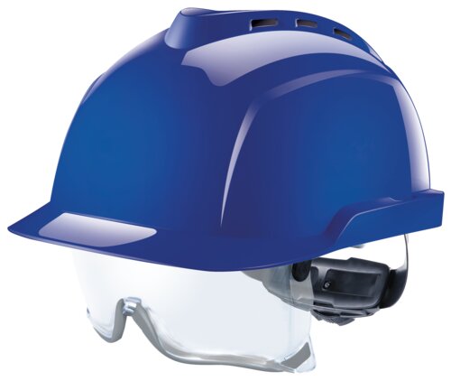 Ventilerad hjälm i dynamisk design med 6-punkts Fas-Trac® III skruvinredning med komfortband i skum. Integrerade glasögon med gummitätning, kort brätte och vattenränna. Skyddar mot lateral deformering (LD), och ner till -30 °C. 30 mm spår för fastsättning av tillbehör. Vikt 495 g. Storlek 52-63 cm.