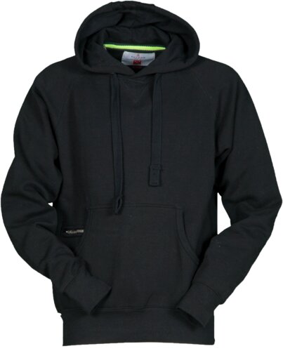 Bekväm huvtröja med fodrad huva och robust dragsko framtill. Tröjan har en stor känguruficka med en invändig praktisk blixtlåsficka. Ribbstickade muddar i slutet av ärmen. Lämplig som profilplagg.