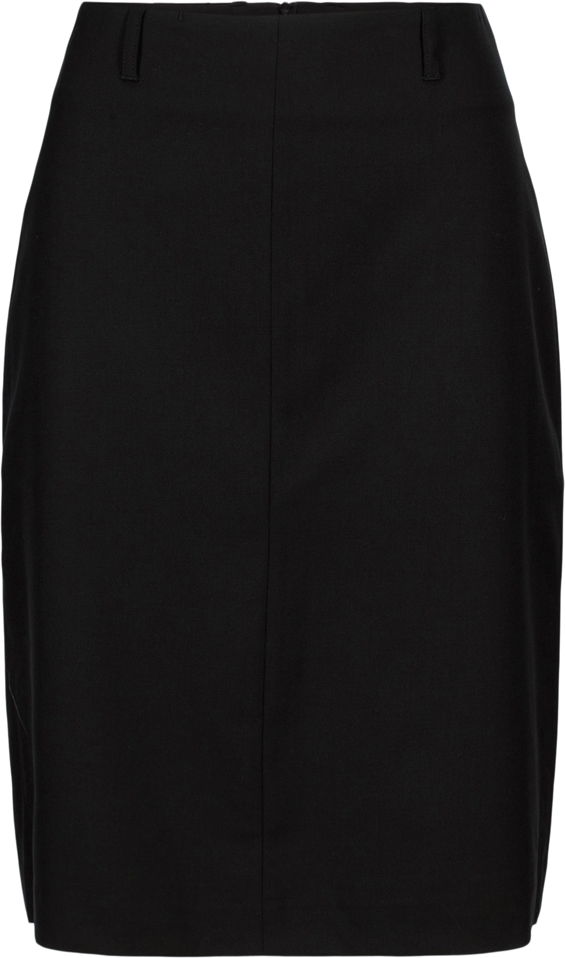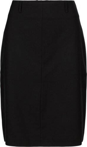 A-formad, knälång kjol med stängt sprund mitt bak. Mittsöm framtill och två sprund i midjan bak. Sex bälteshällor fördelade runt midjan och en dold ficka på höger sida av linningen för kort och andra småsaker. Kjolen är fodrad med elastiskt foder så att den känns bekväm att ha på sig. Stretch i tyget gör att kjolen känns bekväm och gör det lätt att röra sig i den.