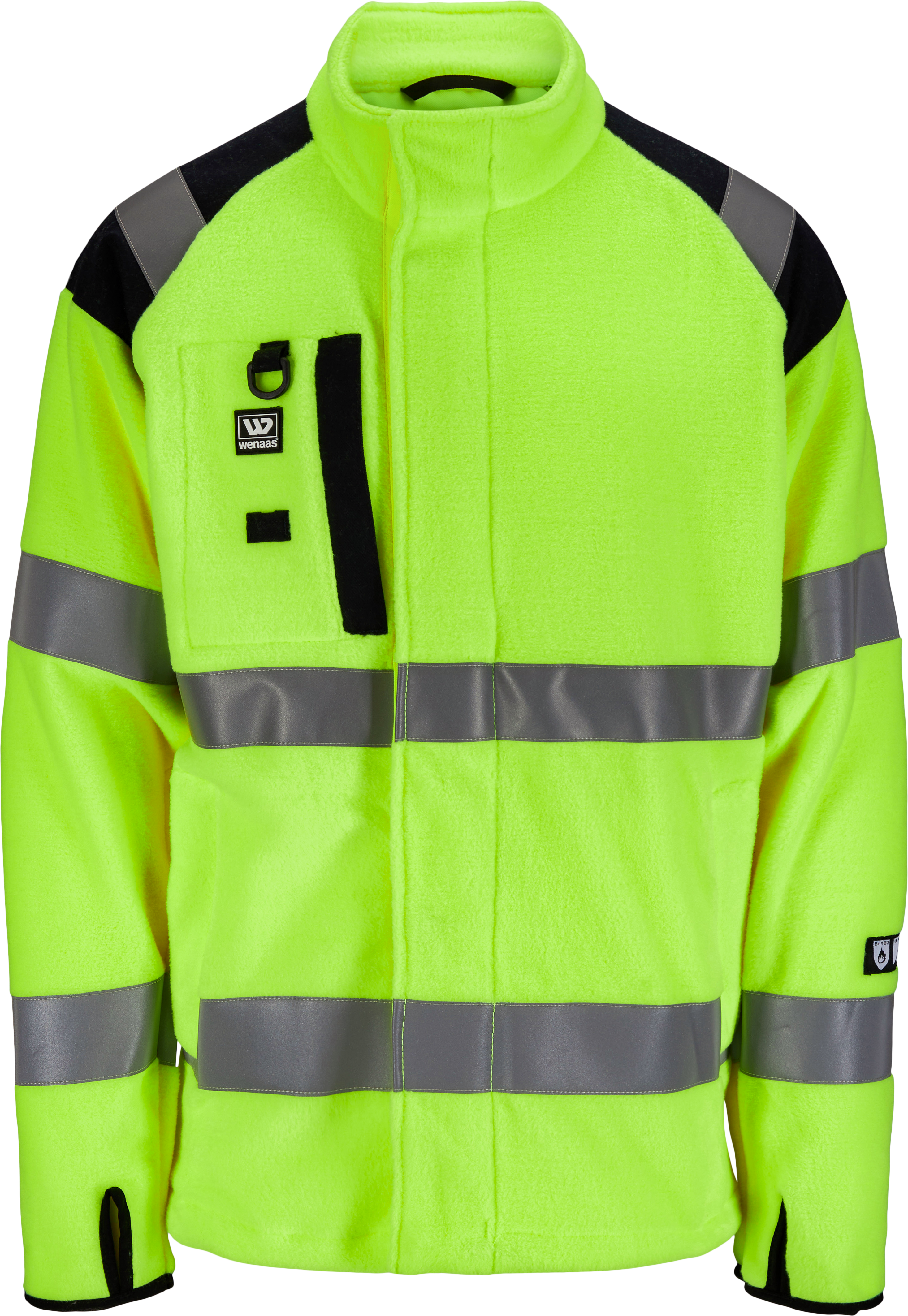 Bekväm fleecejacka med dold dragkedja framtill. Raglanärmar med tumgrepp, flera praktiska fickor och justering av vidden nedtill. Jackan passar bra för dig som behöver skydd mot både ljusbåge och flammor, förutom att den håller dig synlig.
