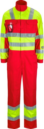 Bekväm overall med flamhämmande och antistatiska egenskaper. Tvåvägsdragkedja fram. Expansionsveck i ryggen för god rörelsefrihet. Flera praktiska fickor, bland annat ytterfickor med knappar. Möjligheter att justera i livet och ärmsluten gör att plagget sitter bra. Overallen passar bra för dig som behöver skydd mot eld och samtidigt måste vara synlig