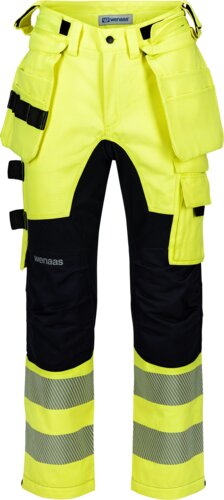 Multinorm stretchbyxor Universal för dam. Har ett ryggok, justerbar linning och flera praktiska fickor, inklusive avtagbara hängfickor fram. Dubbel reflex på benen, justerbar nederkant och bekväma 4-vägs stretchpaneler som ger optimal rörelsefrihet. Figursydd passform som är anpassad för kvinnokroppen.