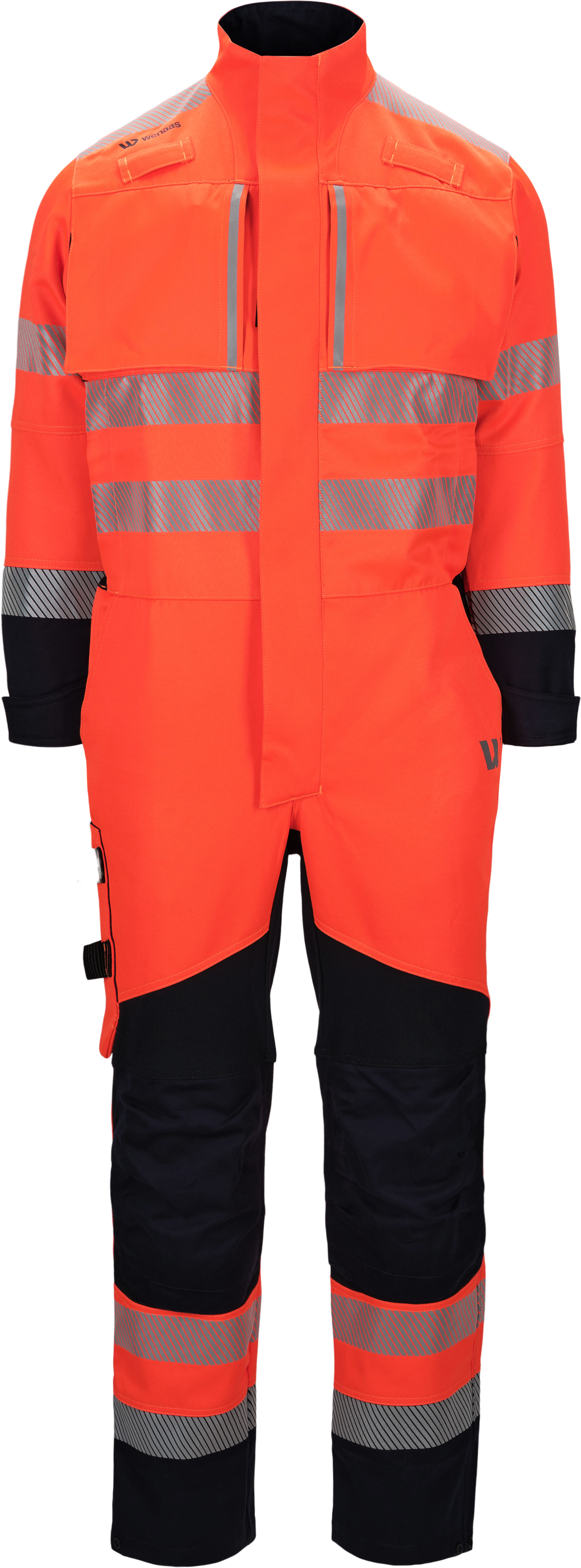 Multinorm stretchoverall Universal med ståkrage, blixtlås fram och flera praktiska fickor. Bärstycke fram och bak, knäskyddsfickor och viddjustering vid nederkanten på ärmar och ben. Dubbla reflexband på ben, ärmar och torso. En snedställd reflex vid axlarna. Behagliga 4-vägs stretchpaneler som ger optimal rörlighet.