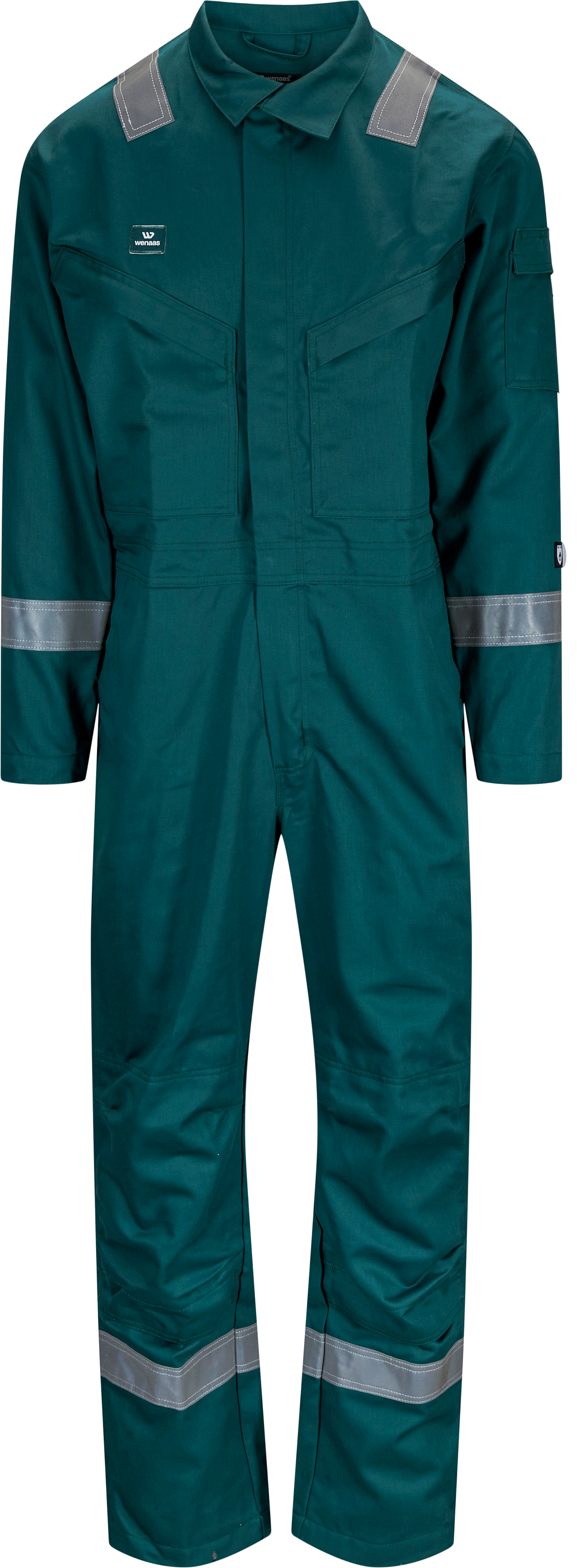 Bekväm flamhämmande overall med dolt tvåvägs blixtlås fram. Ståkrage, veck i ryggen som ger god rörelsefrihet. Många praktiska fickor, bland annat yttre knäskyddsfickor. Resår i midjan gör att overallen sitter bra. Justeringsmöjlighet i ärmsluten. Overallen passar utmärkt för dig som behöver skydd mot ljusbågar och eld.