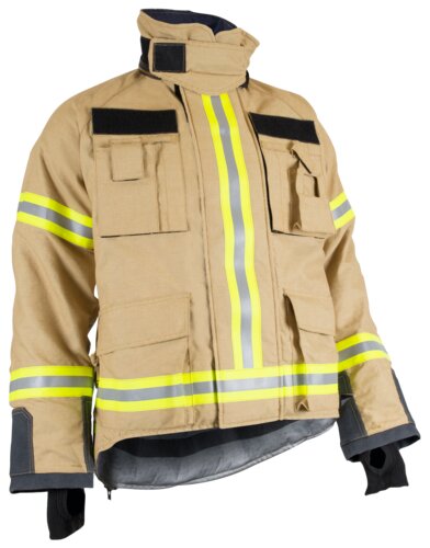 Jacka i speciellt slitstarkt och flamskyddande tyg för brandkår. Hög hals, vaddering på axlar och kraftig dragkedja fram med stormklaffar. Utbytbara fickpaneler, hängare för kommunikationsutrustning och handskar, samt flera praktiska fickor. Formade ärmar för bra rörlighet, stoppning på underarmen och tumgrepp i änden av ärmen. Lämplig för brand- och räddningsyrken.