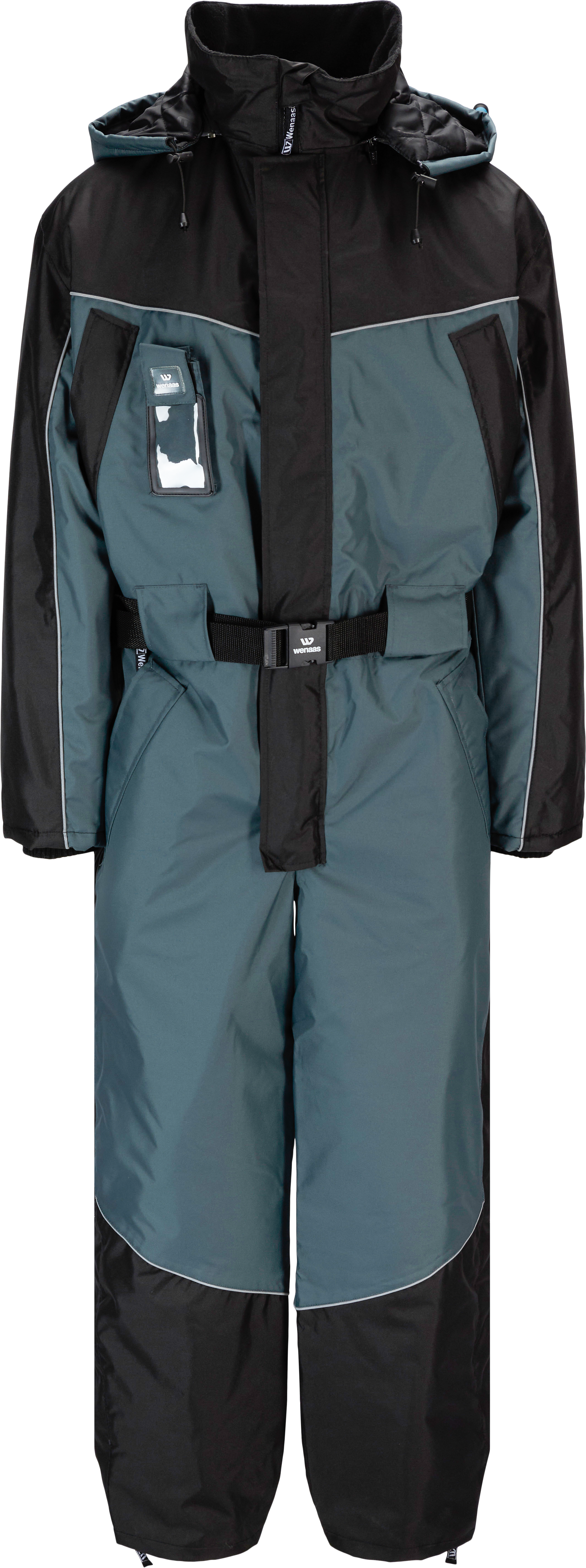 Vatten- och vindavvisande overall med vadderat foder. Avtagbar huva med justering, fleecefoder i krage och dold tvåvägsdragkedja fram. Många praktiska fickor och ventilation under ärmarna ger ökad komfort. Resår och bälte i midjan och muddarna i ärmsluten. Overall med goda isoleringsegenskaper som passar för dig som ska vistas utomhus i kallt väder.