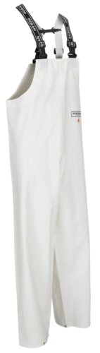 Regnoverall i stickad polyester som är PVC-belagd. Justerbara, elastiska hängslen och fix-lock-spännen. Tryckknappsjustering i bensluten. Kan användas hela året och särskilt i miljöer där antiflame krävs.