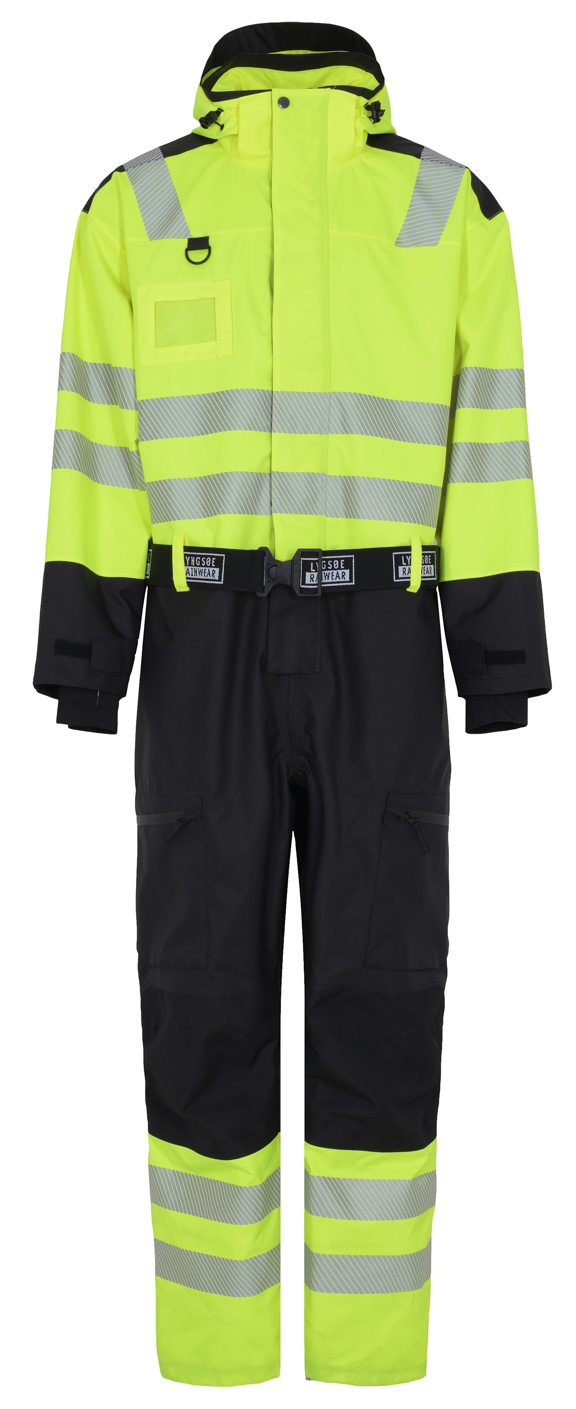 Funktionell och slitstark skaloverall med hög synlighet. Avtagbar huva, justerbar midja och flera praktiska fickor. Dragkedjeöppning under armarna för ventilation och kardborrejustering på ärmar och ben. Dubbel knäskyddsficka och avtagbara hängslen.