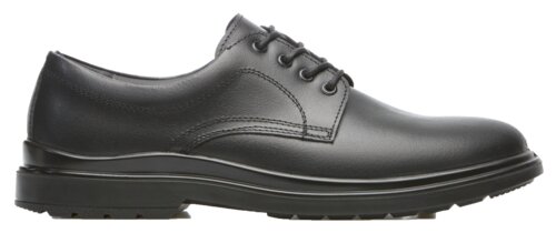 Uniformssko med skyddståhätta, i klassisk design, av läder, med snörning. Sula i PU med goda stötdämpande och halksäkra egenskaper. Svarta och neutrala sömmar. Foder av andningsbart textil och läder. Vadderad överkant. Uttagbar, stötdämpande och antistatisk innersula.