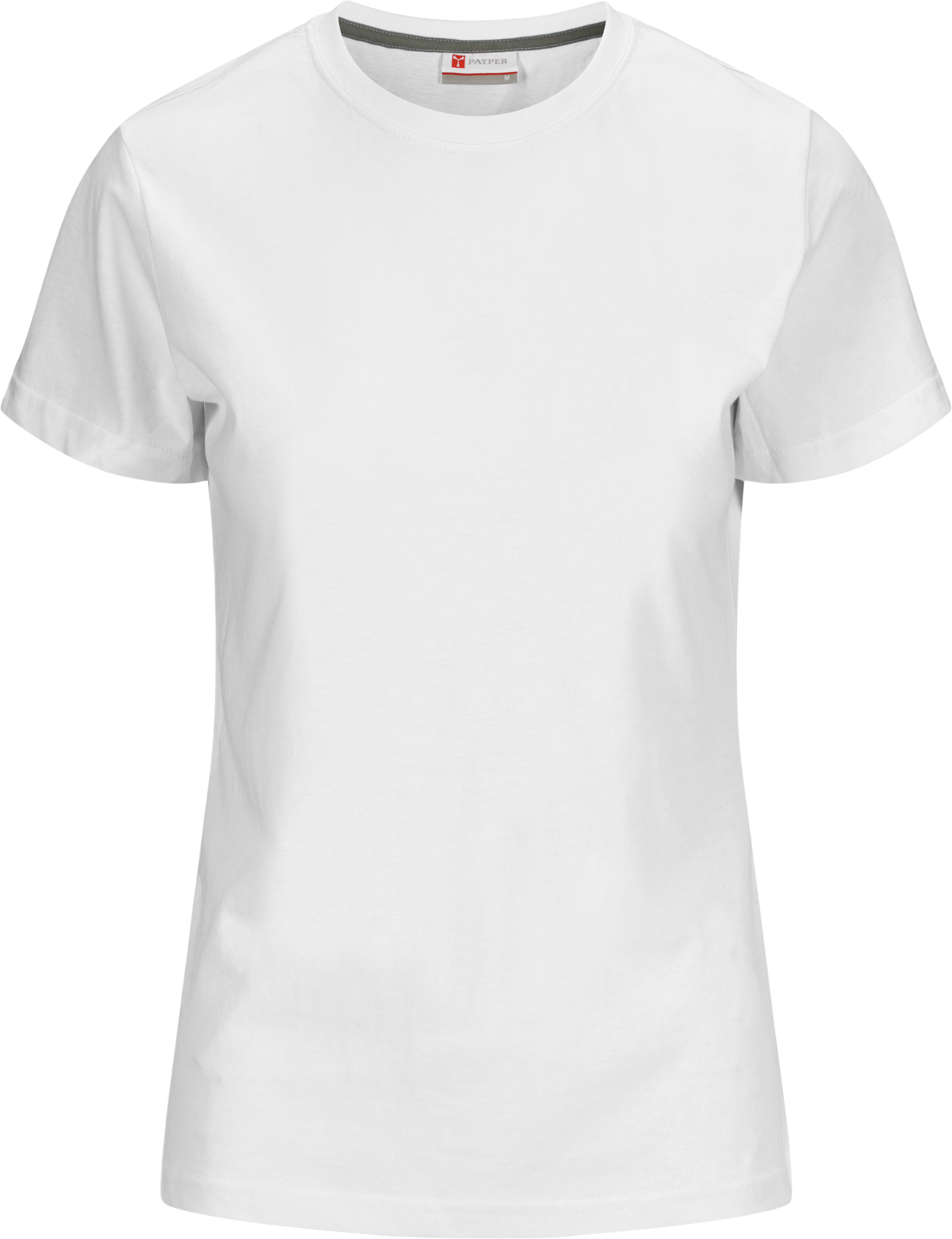 t-shirt för dam, kort ärm, rund ringning i spandexmix med toppsöm framtill, smala ärmar och bra passform, tejpad förstärkning i kontrastfärg från axel till axel på insidan.