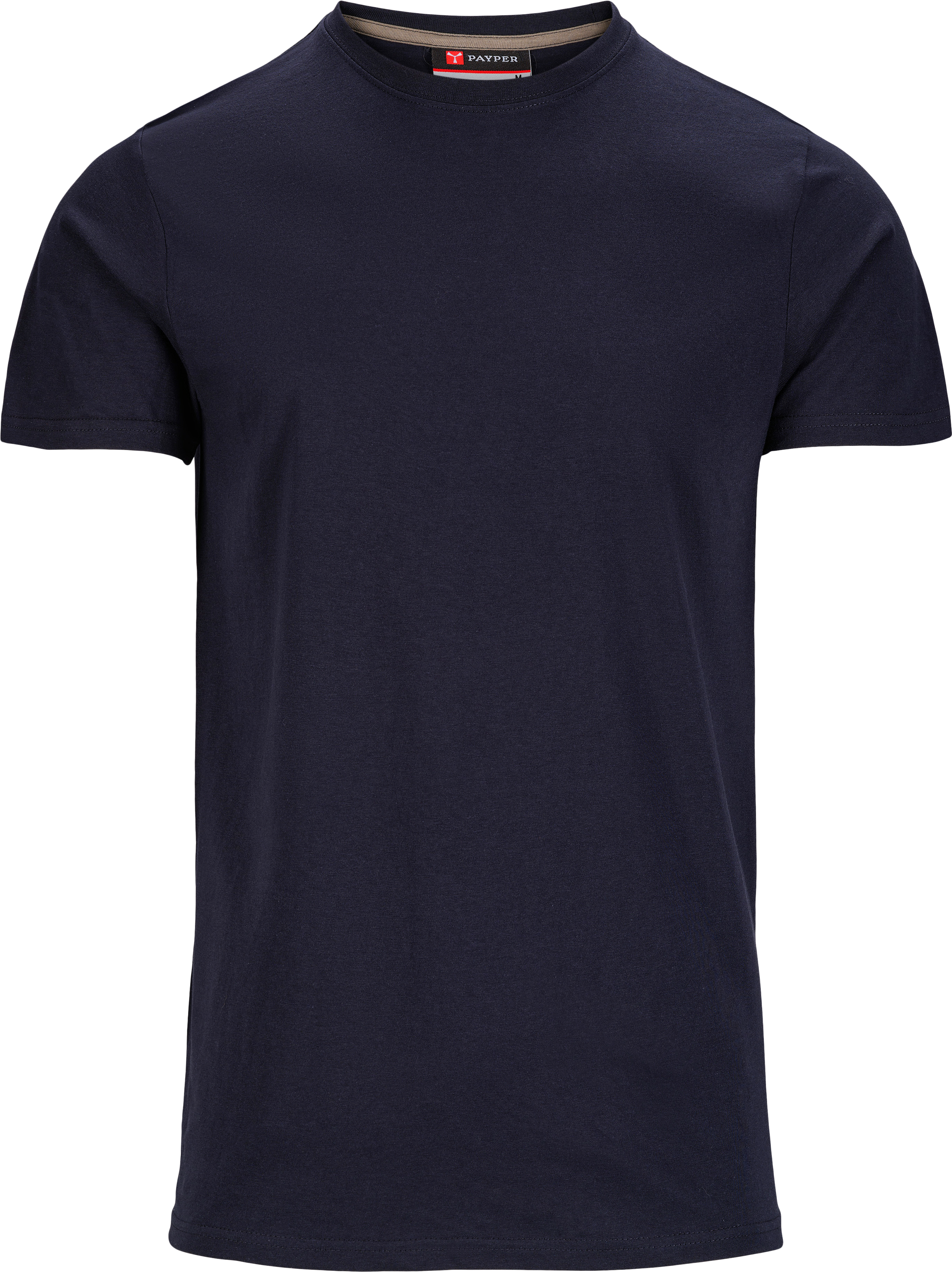 t-shirt för herr, kort ärm, rund ringning i spandexmix med toppsöm framtill, smala ärmar, tejpad förstärkning från axel till axel på insidan.