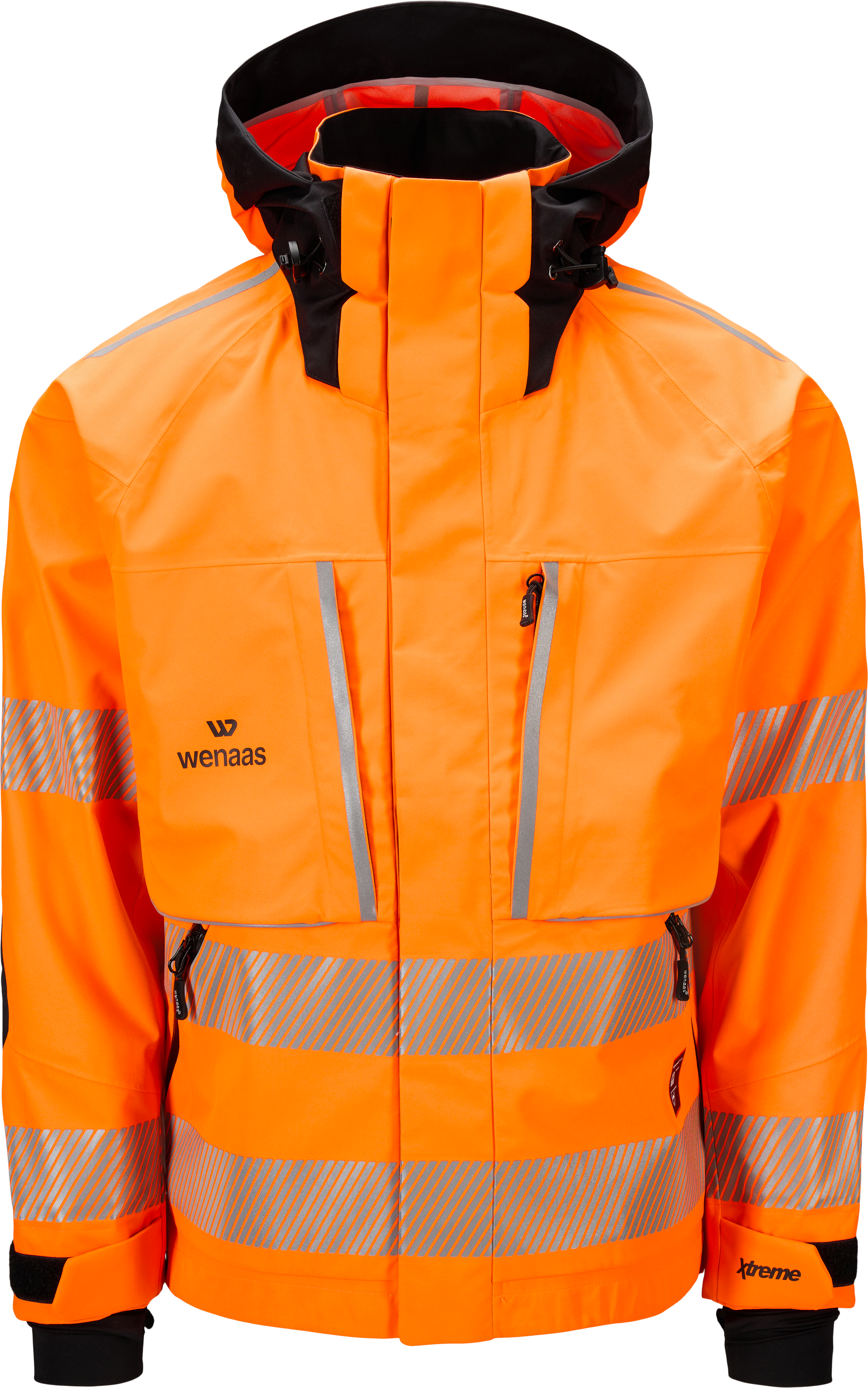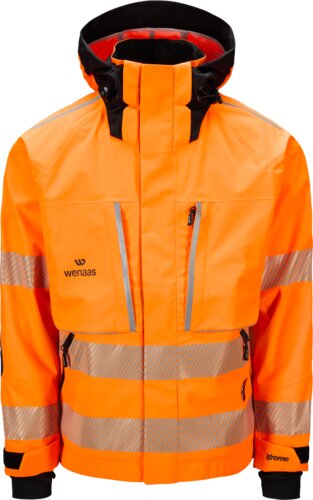 Trelagersjacka godkänd för synbarhetsklass 3. Jackan har tejpade sömmar som skyddar mot väder och vind, hög krage och avtagbar huva som passar för hjälmbruk. Dold dragkedja under vindslå hindrar vind från att tränga in. Ventilationsöppningar under armarna med vindslå gör det enkelt att reglera temperaturen. Praktiska fickor, förstärkta armbågar och justerbara ärmar med ribb och tumöppning ger flexibilitet och komfort. Reflexband runt kroppen och ärmarna säkerställer hög synlighet.