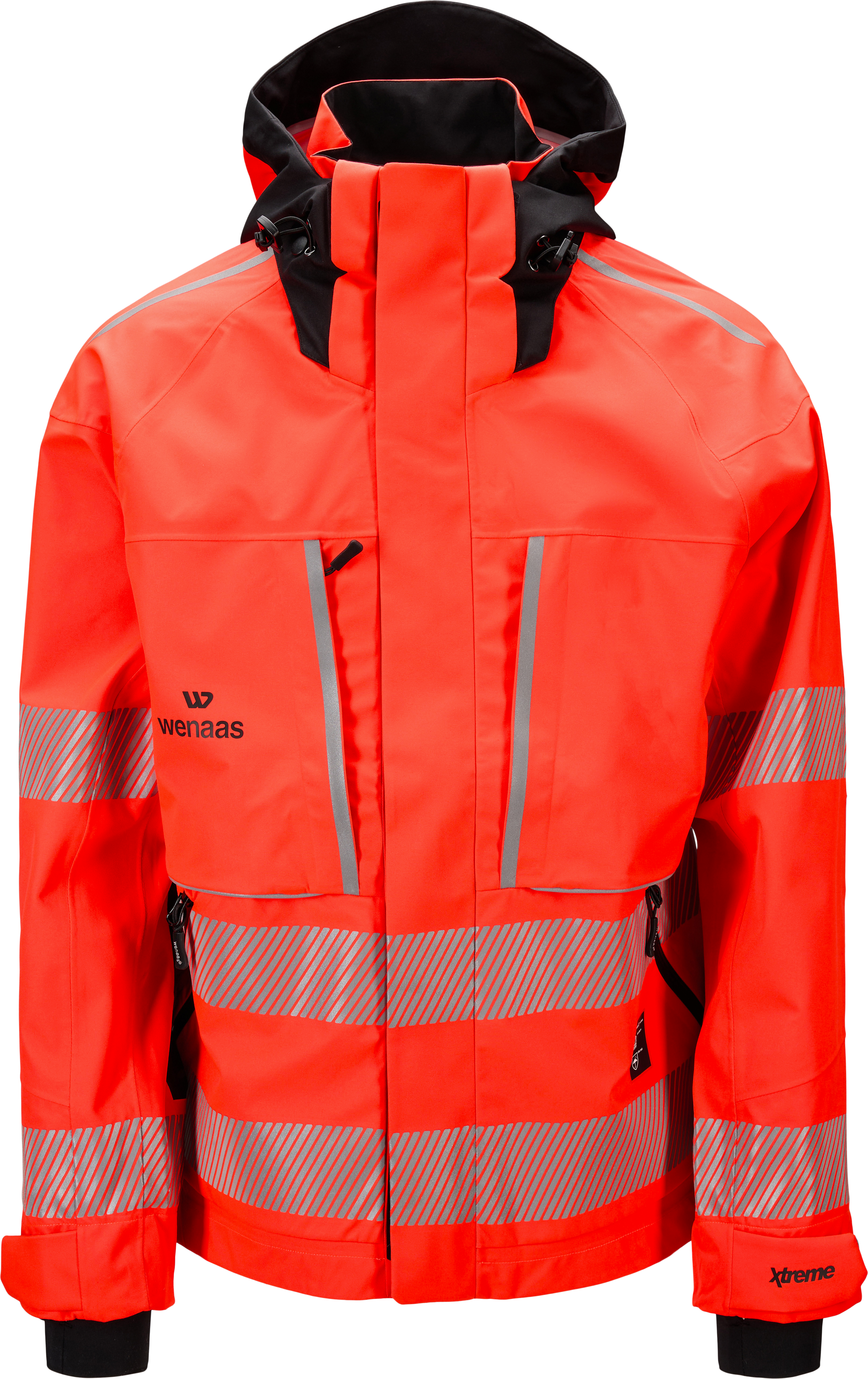Trelagersjacka godkänd för synbarhetsklass 3. Jackan har tejpade sömmar som skyddar mot väder och vind, hög krage och avtagbar huva som passar för hjälmbruk. Dold dragkedja under vindslå hindrar vind från att tränga in. Ventilationsöppningar under armarna med vindslå gör det enkelt att reglera temperaturen. Praktiska fickor, förstärkta armbågar och justerbara ärmar med ribb och tumöppning ger flexibilitet och komfort. Reflexband runt kroppen och ärmarna säkerställer hög synlighet.